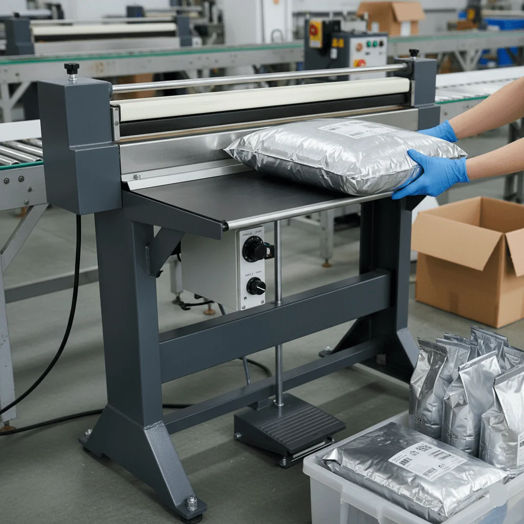 An impulse sealer melts the film cleanly and evenly. This method gives a strong, long-lasting seal.